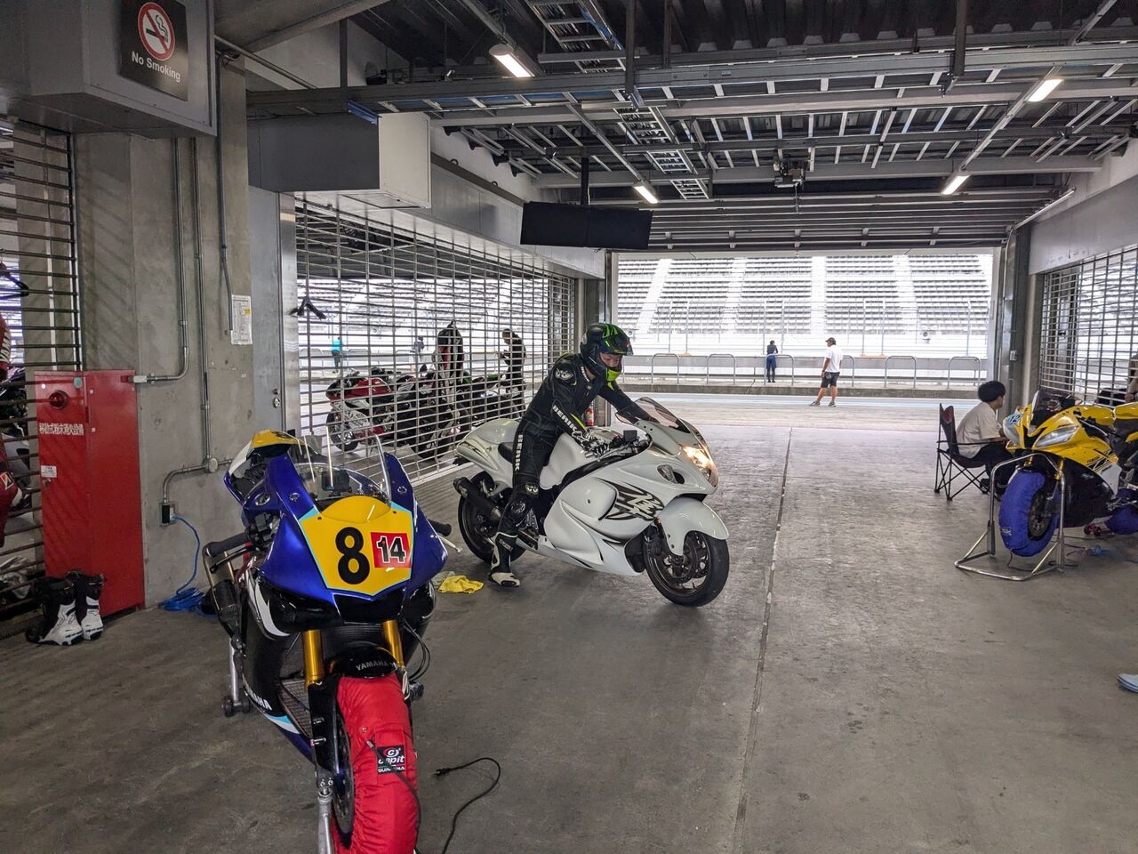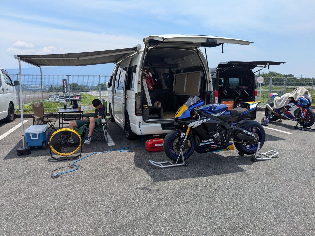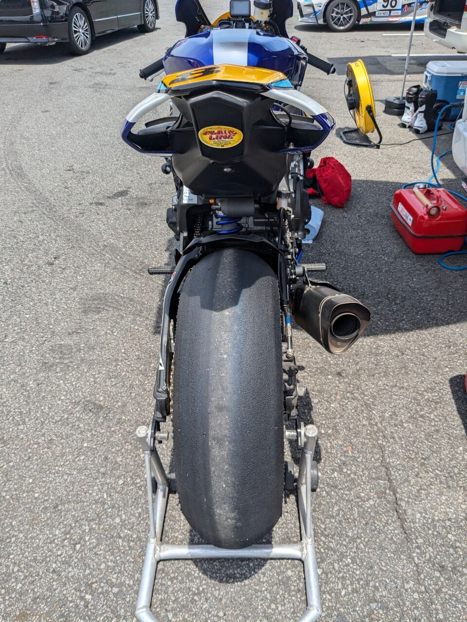 いつも通りみんなに手伝ってもらってブリヂストンタイヤパドック設営。